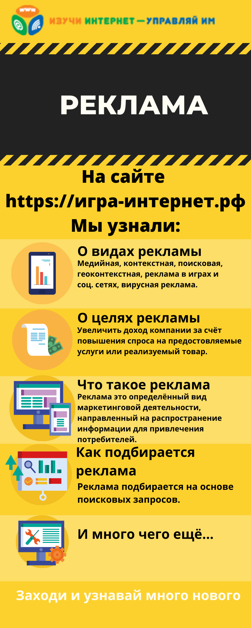 Приглашаем на выставку инфографик, созданных участниками IX Всероссийского онлайн-чемпионата «Изучи интернет - управляй им» по мотивам образовательных игр из интерактивного раздела «Знания»
