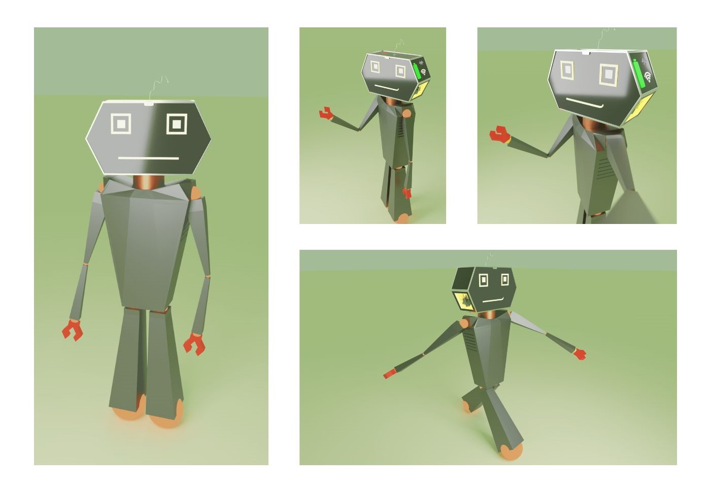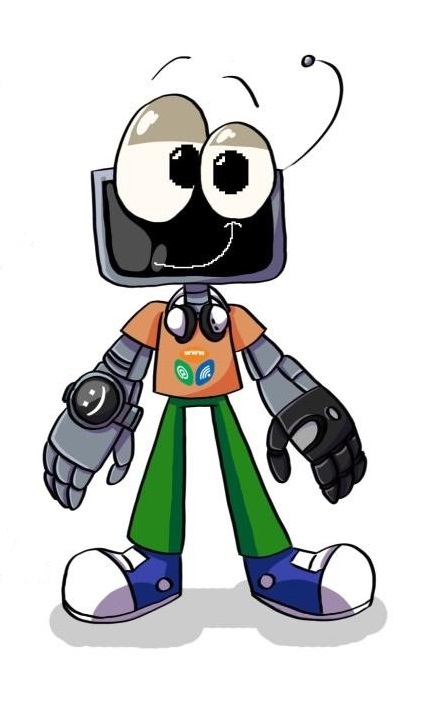Маскот Роботаник ...Это робот-подросток, он любознательный и всегда готов помочь друзьям. Голова робота - монитор, на котором показываются его эмоции; с помощью своих электронных часов он перемещается в цифровом пространстве, а кибер-перчатка позволяет ему управлять цифровыми объектами