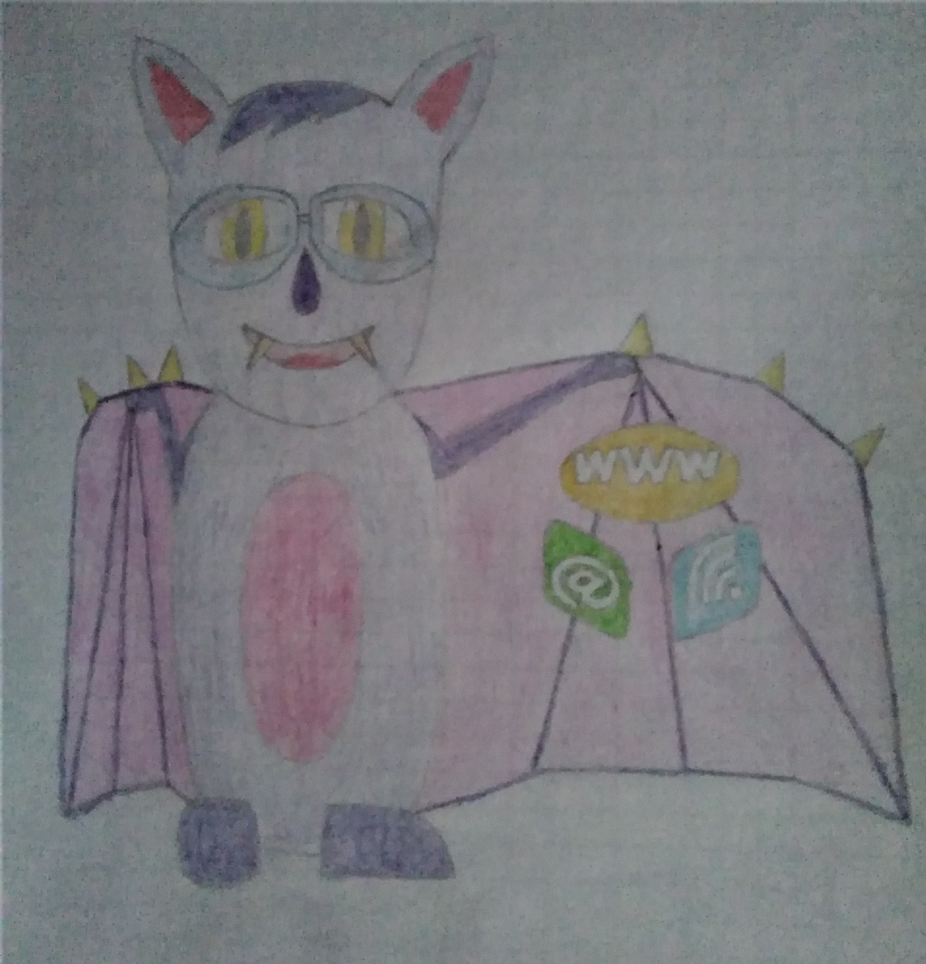 Маскот Зубастик ...Это самая умная, эрудированная и сообразительная летучая мышь, ведь когда-то он жил в заброшенной библиотеке, в которой прочитал все книги. Однако это не мешает ему быть весёлым и креативным. Сейчас Зубастик работает в известной IT-компании и знает абсолютно всё про интернет. Он носит очки, что подчёркивает его начитанность. А ещё он обожает видеоигры и трудные задачки по программированию