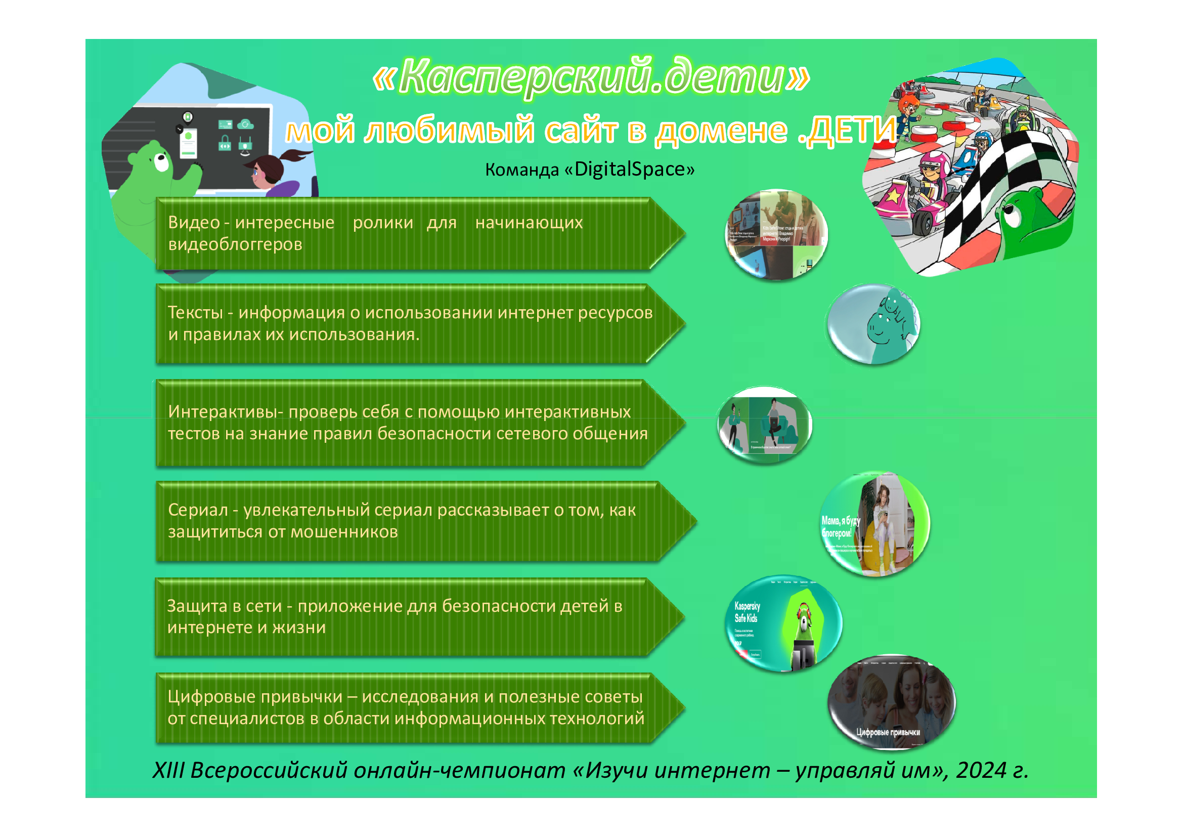 Мой любимый сайт в домене .ДЕТИ: инфографики участников XIII Всероссийского онлайн-чемпионата «Изучи интернет – управляй им», 2024