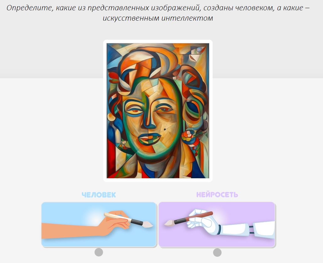 Всего в модуле раскрываются 5 тем: что такое цифровое искусство, какие технологии помогают художникам в их творчестве и наоборот с какими трудностями они сталкиваются; кто собственно такой цифровой художник; история зарождения цифрового искусства; какие инновации используются в музеях. Чтобы запомнить больше фактов, игрок выполнит задание на сопоставление, расшифрует филворд, ответит на вопросы теста, применит свои географические знания, а также попробует отличить работы художника-человека от работ искусственного интеллекта (а разница не всегда очевидна!).